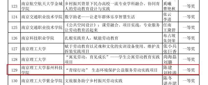 2月24日,江苏省高等教育学会公布了2022年江苏省高等学校劳动教育优秀实践项目评选结果,经高校推荐、材料审核、专家初审、作品内容审核、专家复审等环节,江苏省各高校和研究会在限额推荐的423个项目中,评出了特等奖53项、一等奖135项。