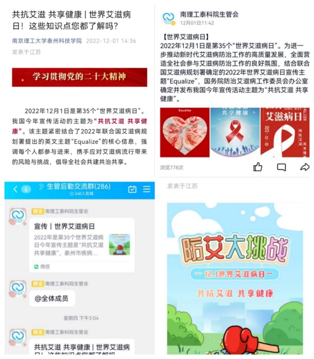 12月1日,金年会app通过官方微信推送、校学生生活管理委员会官方QQ推送等形式积极开展线上宣传,并要求各班班长转发市疾控中心相关微信,参与“防艾大挑战”小游戏,充分利用平台宣传艾滋病相关知识点。